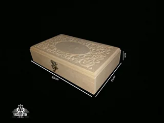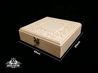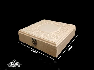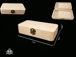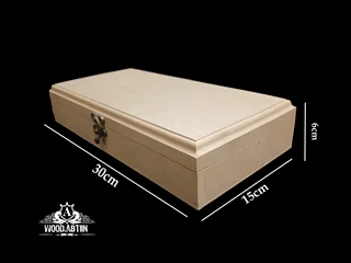 یک جعبه چوبی با کیفیت از جنس چوب MDF خام که از بهترین نوع ورق ام دی اف ،واناچای تایلندی ساخته شده است. این جعبههای چوبی خام کاربرد های بسیار زیادی دارند و برای هر جایی قابل استفاده هستند . میتوان از این جعبه به عنوان جعبه ساعت، جعبه تیبگ ، جعبه وسایل مختلف و... هر کاربرد دلخواهی استفاده کنیم. ضخامت چوب به کار رفته در این جعبه 8 میل و روی کار 3 میلیمتر می باشد. به دلیل برش های فارسی جعبه استحکام بسیار خوبی دارد و هم چنین به دلیل سطح صاف و صیقلی و بدون هیچ فرورفتگی ، احتیاجی به سنباده و یا فرز کاری و بتونه قبل از رنگآمیزی ندارد. قفل و لولاهاي اين جعبه از جنس فلز ميباشد.