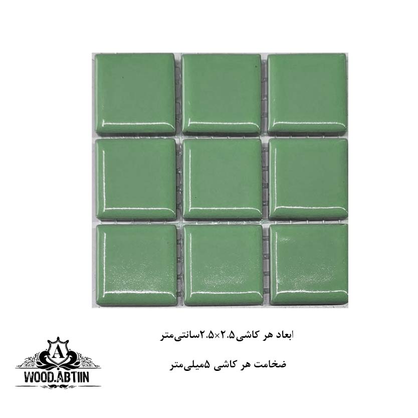 • کاشی استخری مینیاتوری ابعاد یکسان و منظم دارد (۲.۵×۲.۵)